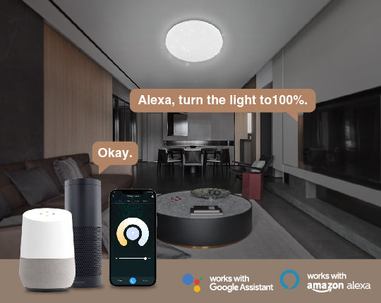 Upgrade your space with Smart Wi-Fi Ceiling Lights available in 12W, 18W, and 24W. Featuring CCT adjustability and full dimming capabilities, these smart lights offer hands-free control via Alexa and Google Assistant. Just use your voice to turn them on or off, or fine-tune the brightness to create the perfect ambiance.