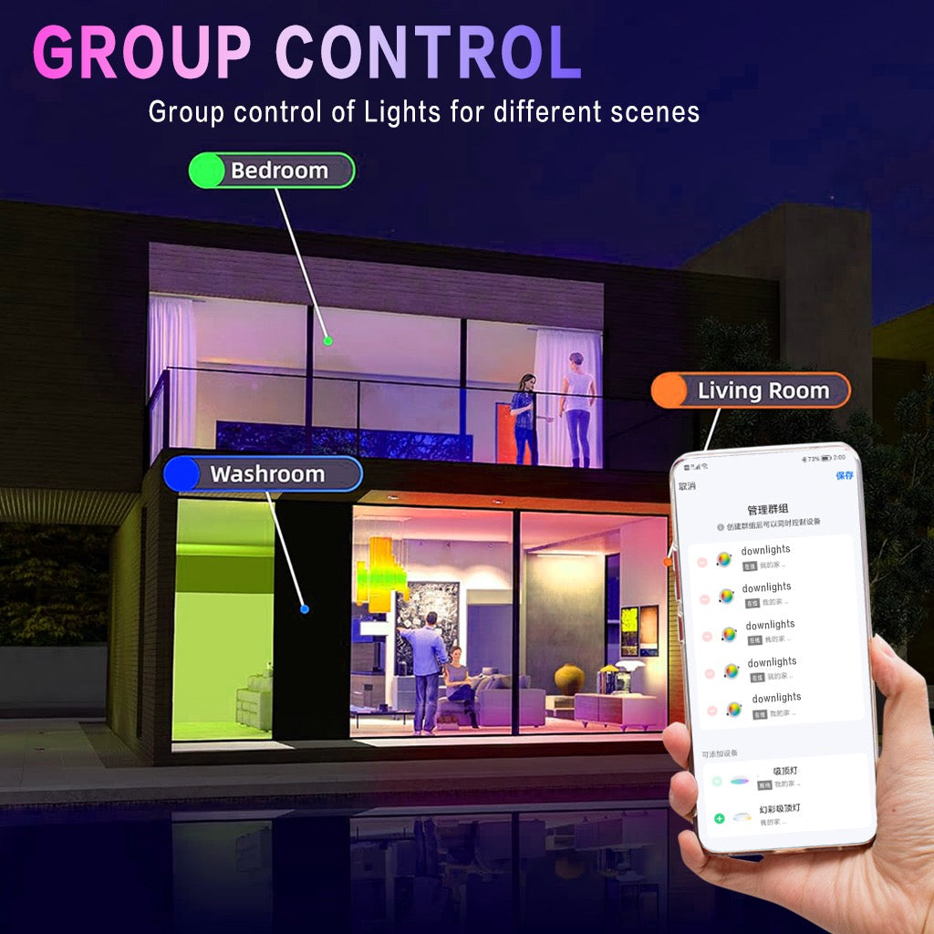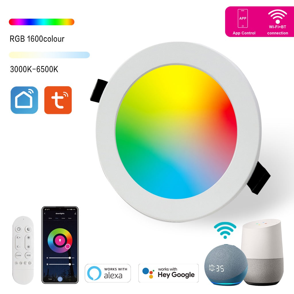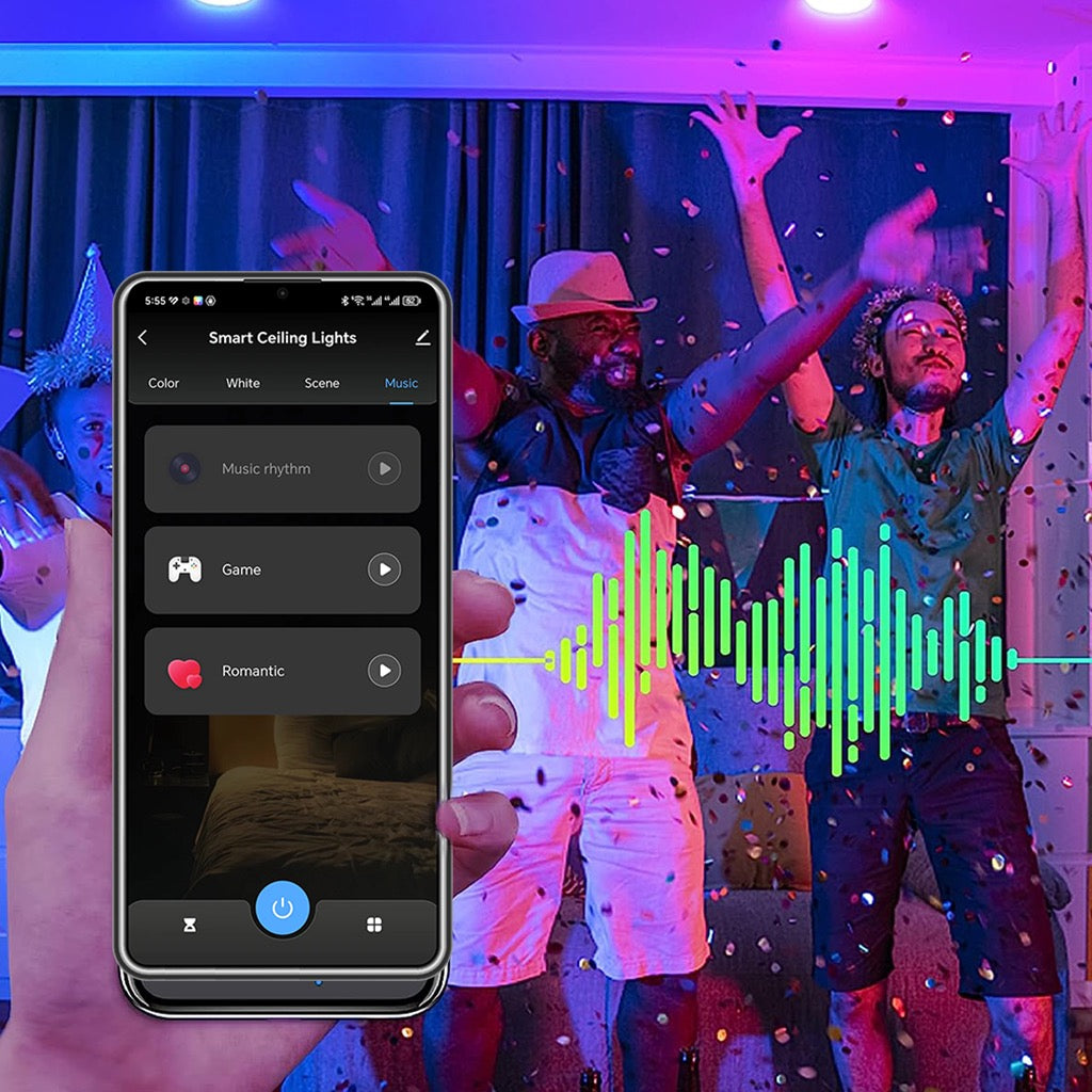 Imagine limitless lighting possibilities! Our 4-inch Smart Recessed LED Downlights offer a spectrum of millions of RGBCW colors, individual control, and smooth dimming – all controllable via Wi-Fi, Bluetooth Direct Connect, Alexa, and Google Assistant. Set timers, create smart automations, and even sync lights to your music. Built waterproof for any environment.